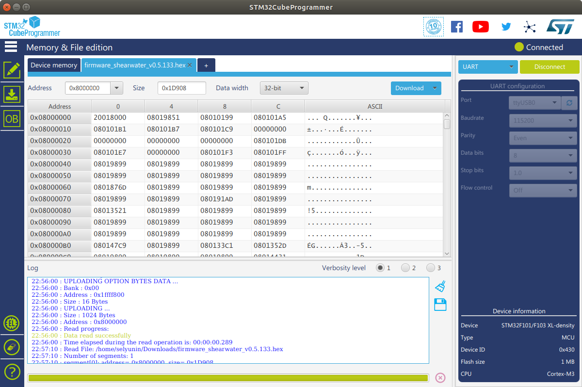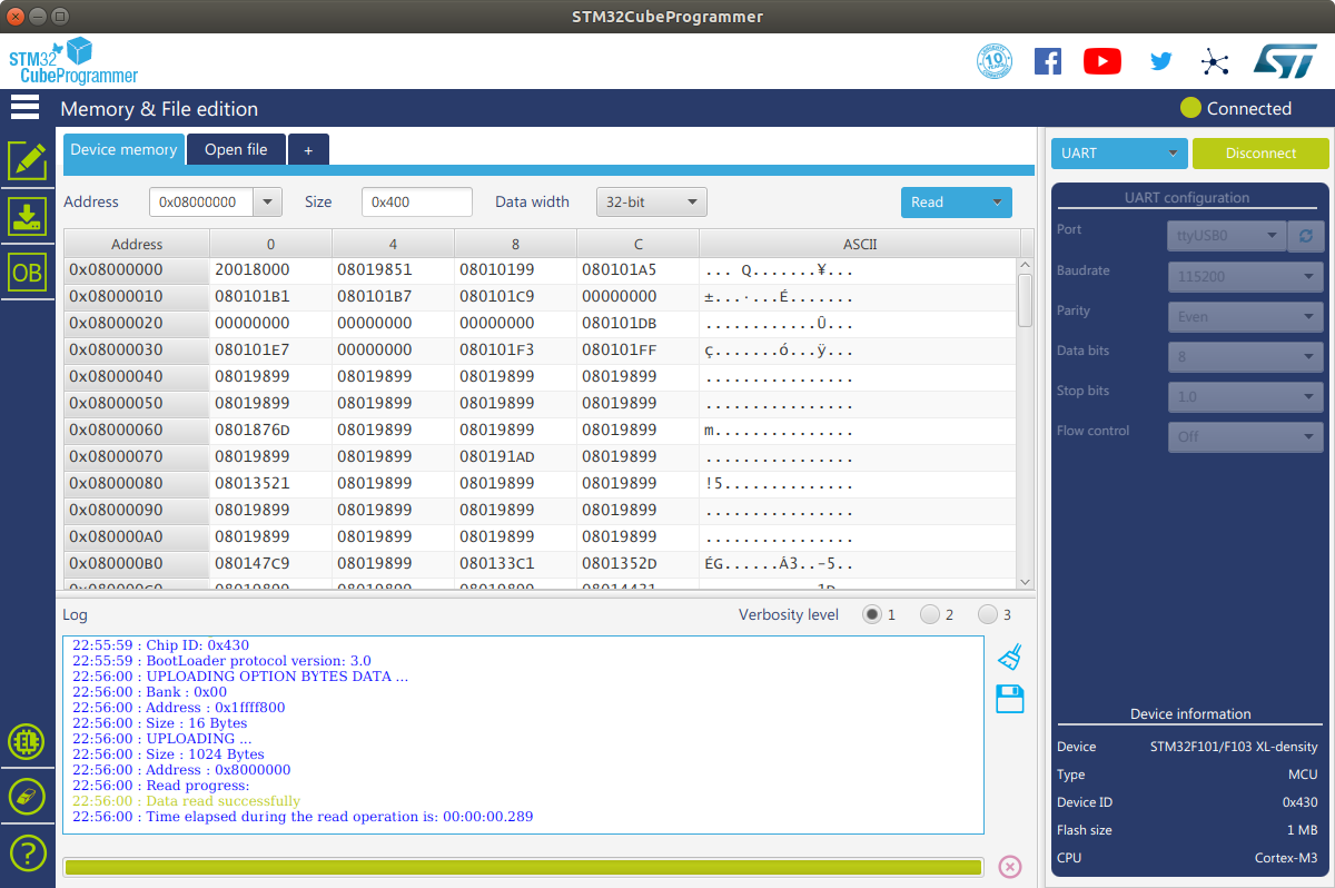 ./STM32_Programmer_CLI --connect port=/dev/ttyUSB0